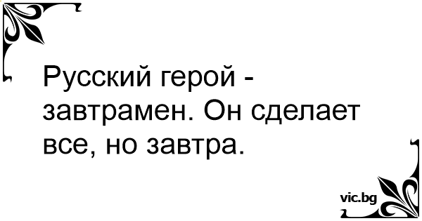 Русский герой - завтрамен. Он сделает все, но завтра.