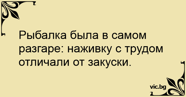 Рыбалка была в самом разгаре: наживку с трудом отличали от закуски.