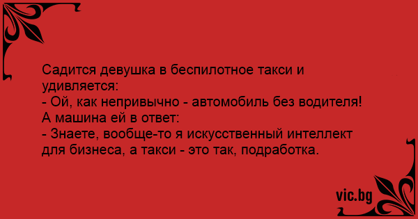 - Знаете, вообще-то я искусственный интеллект для бизнеса, а такси - это так, подработка.