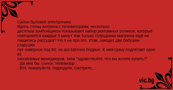 лищились рассудка? Но я не про это. Итак, заходят две бабушки-старушки