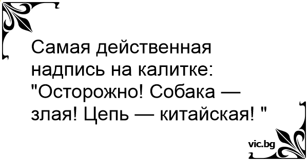 "Осторожно! Собака — злая! Цепь — китайская! "