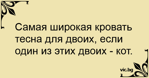 Самая широкая кровать тесна для двоих, если один из этих двоих - кот.
