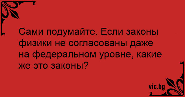 Сами подумайте. Если законы физики не согласованы даже на федеральном уровне, какие же это законы?