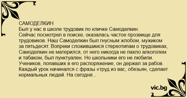 САМОДЕЛКИН Был у нас в школе трудовик по кличке Самоделкин.