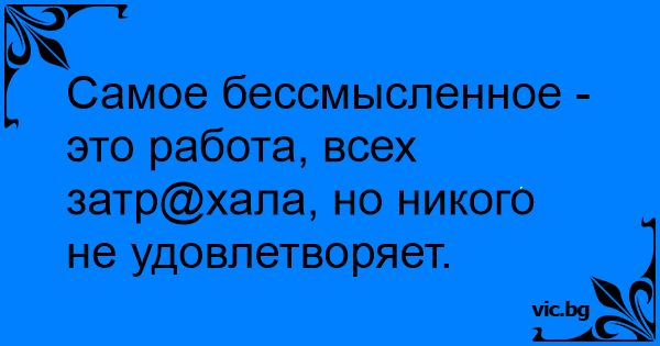 Самое бессмысленное - это работа, всех затр@хала, но никого не удовлетворяет.