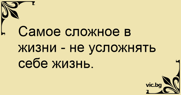 Самое сложное в жизни - не усложнять себе жизнь.
