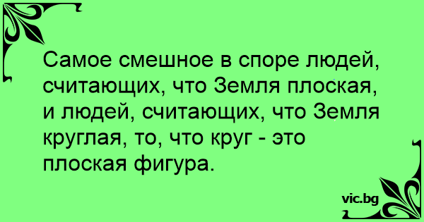 Самое смешное в споре людей, считающих, что Земля плоская, и людей, считающих, что Земля круглая, то, что круг - это плоская фигура.