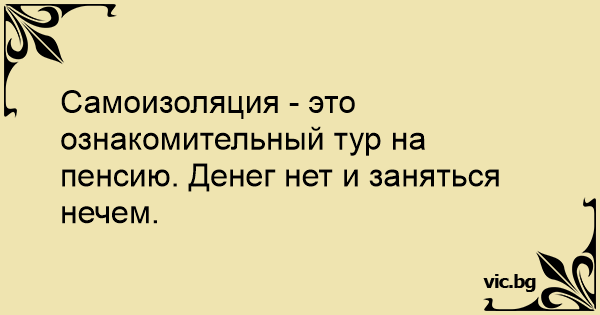 Самоизоляция - это ознакомительный тур на пенсию. Денег нет и заняться нечем.
