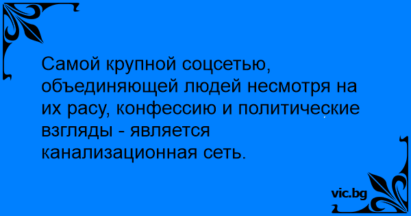 Самой крупной соцсетью, объединяющей людей несмотря на их расу, конфессию и политические взгляды - является канализационная сеть.