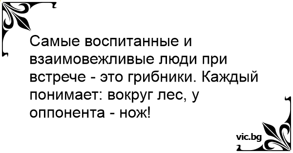 Самые воспитанные и взаимовежливые люди при встрече - это грибники. Каждый понимает: вокруг лес, у оппонента - нож!