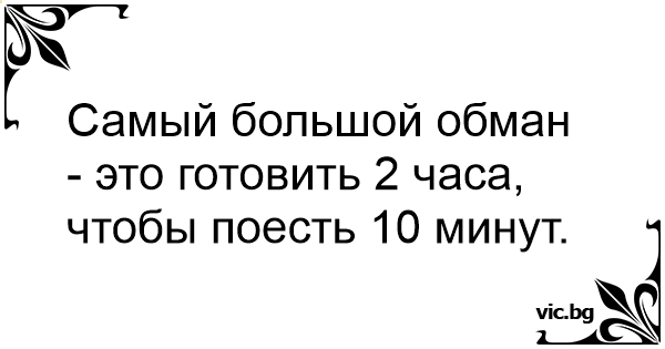 Самый большой обман - это готовить 2 часа, чтобы поесть 10 минут.