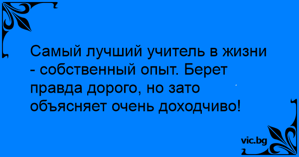 Самый лучший учитель в жизни - собственный опыт. Берет правда дорого, но зато объясняет очень доходчиво!