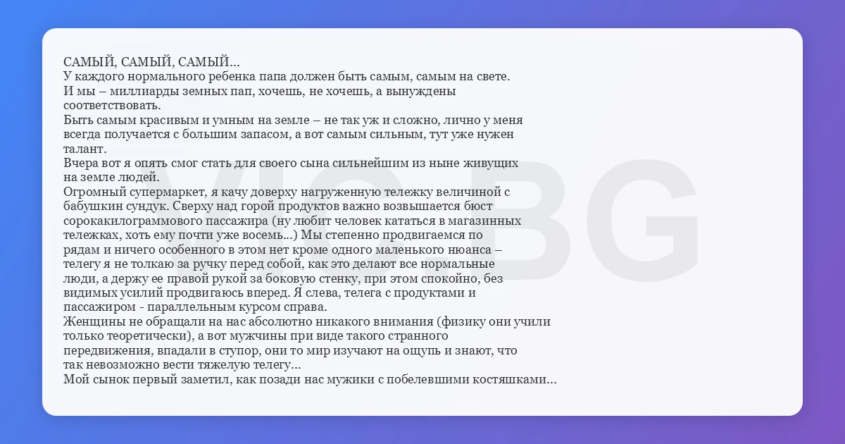 соседней тележке хвастливо заявил: «А у меня папа самый сильный, поэтому