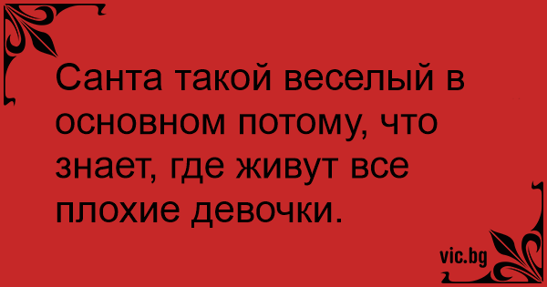 Санта такой веселый в основном потому, что знает, где живут все плохие девочки.