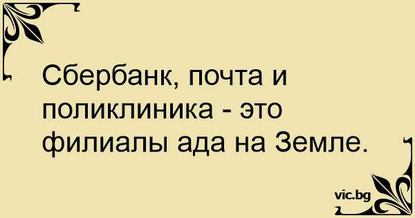 Сбербанк, почта и поликлиника - это филиалы ада на Земле.