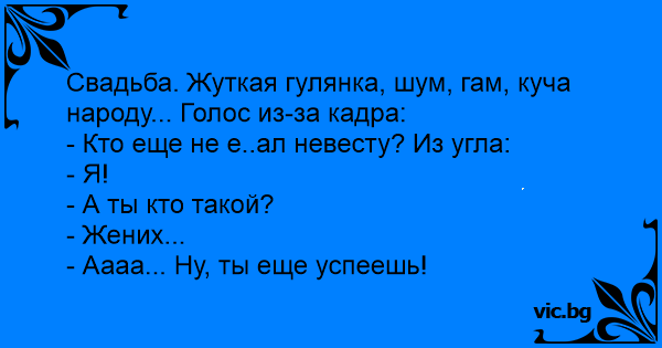 - Кто еще не е..ал невесту? Из угла: