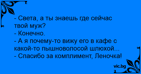- А я почему-то вижу его в кафе с какой-то пышноволосой шлюхой...