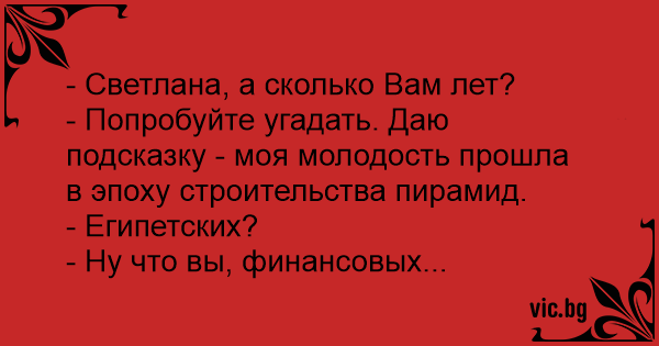 - Попробуйте угадать. Даю подсказку - моя молодость прошла в эпоху строительства пирамид.