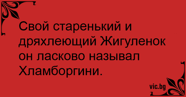 Свой старенький и дряхлеющий Жигуленок он ласково называл Хламборгини.