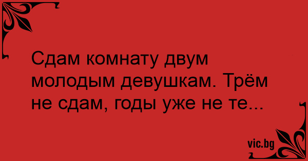 Сдам комнату двум молодым девушкам. Трём не сдам, годы уже не те...