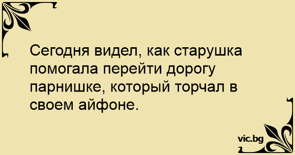 Сегодня видел, как старушка помогала перейти дорогу парнишке, который торчал в своем айфоне.