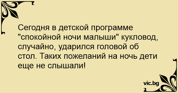 Сегодня в детской программе "спокойной ночи малыши" кукловод, случайно, ударился головой об стол. Таких пожеланий на ночь дети еще не слышали!