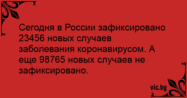 Сегодня в России зафиксировано 23456 новых случаев заболевания коронавирусом. А еще 98765 новых случаев не зафиксировано.