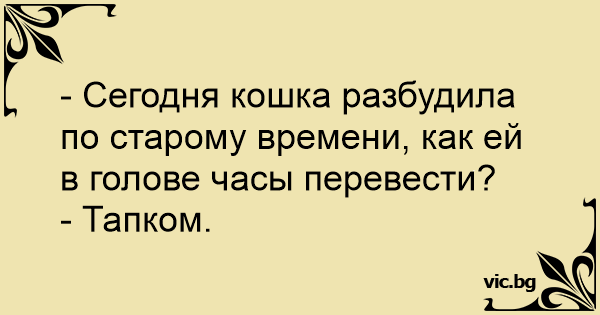 - Сегодня кошка разбудила по старому времени, как ей в голове часы перевести?