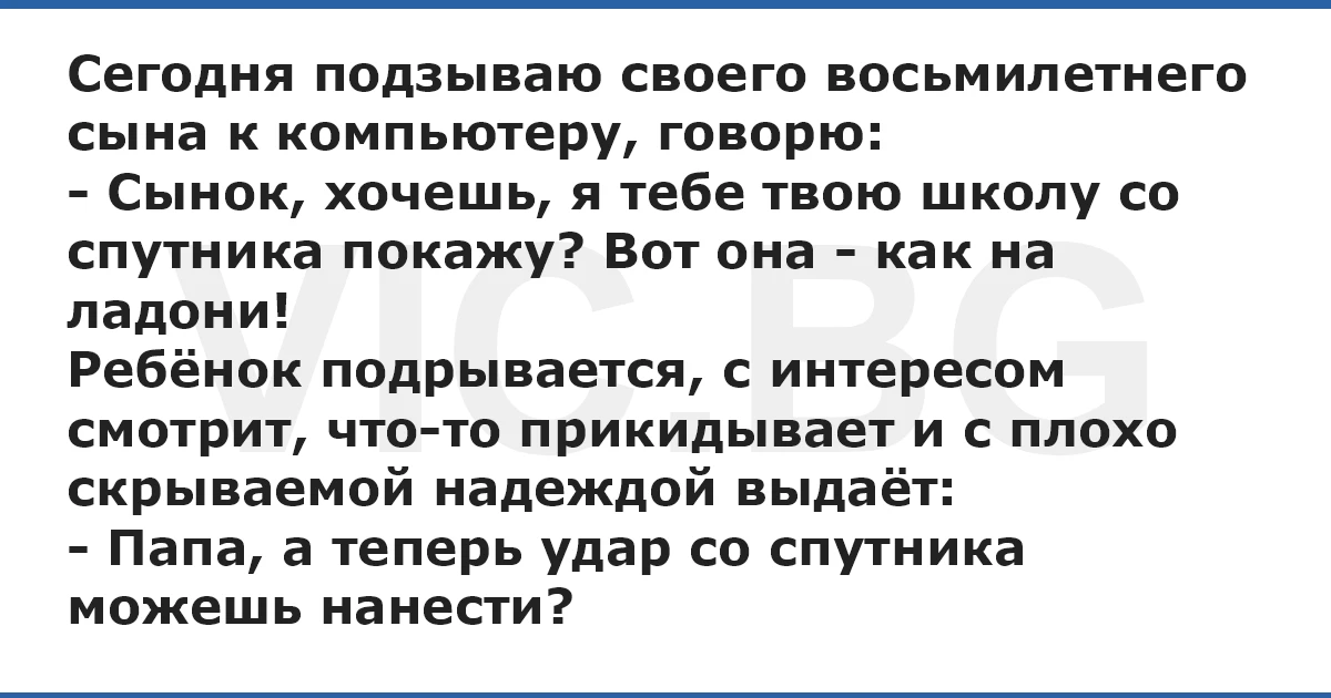 - Сынок, хочешь, я тебе твою школу со спутника покажу? Вот она - как на ладони!