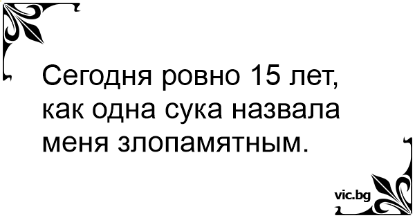 Сегодня ровно 15 лет, как одна cуka назвала меня злопамятным.