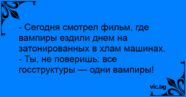 - Ты, не поверишь: все госструктуры — одни вампиры!