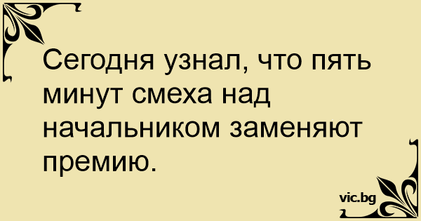 Сегодня узнал, что пять минут смеха над начальником заменяют премию.
