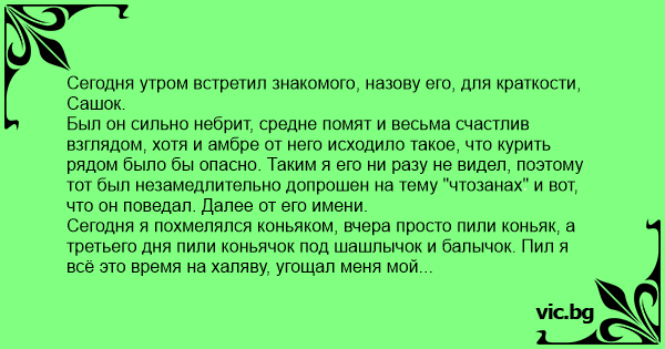 Сегодня утром встретил знакомого, назову его, для краткости, Сашок.