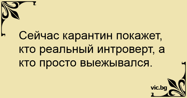 Сейчас карантин покажет, кто реальный интроверт, а кто просто выежывался.