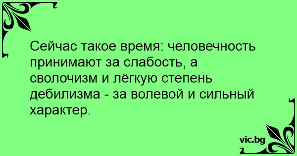Сейчас такое время: человечность принимают за слабость, а сволочизм и лёгкую степень дебилизма - за волевой и сильный характер.