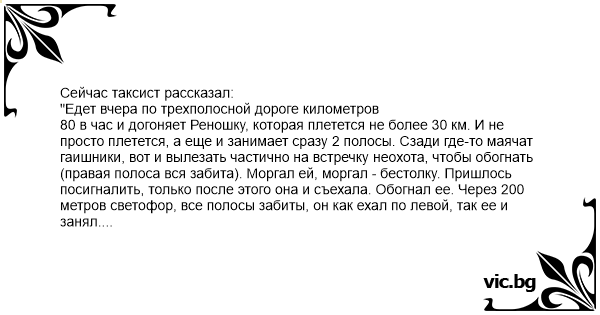 80 в час и догоняет Реношку, которая плетется не более 30 км. И не