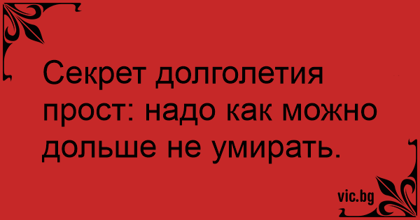 Секрет долголетия прост: надо как можно дольше не умирать.