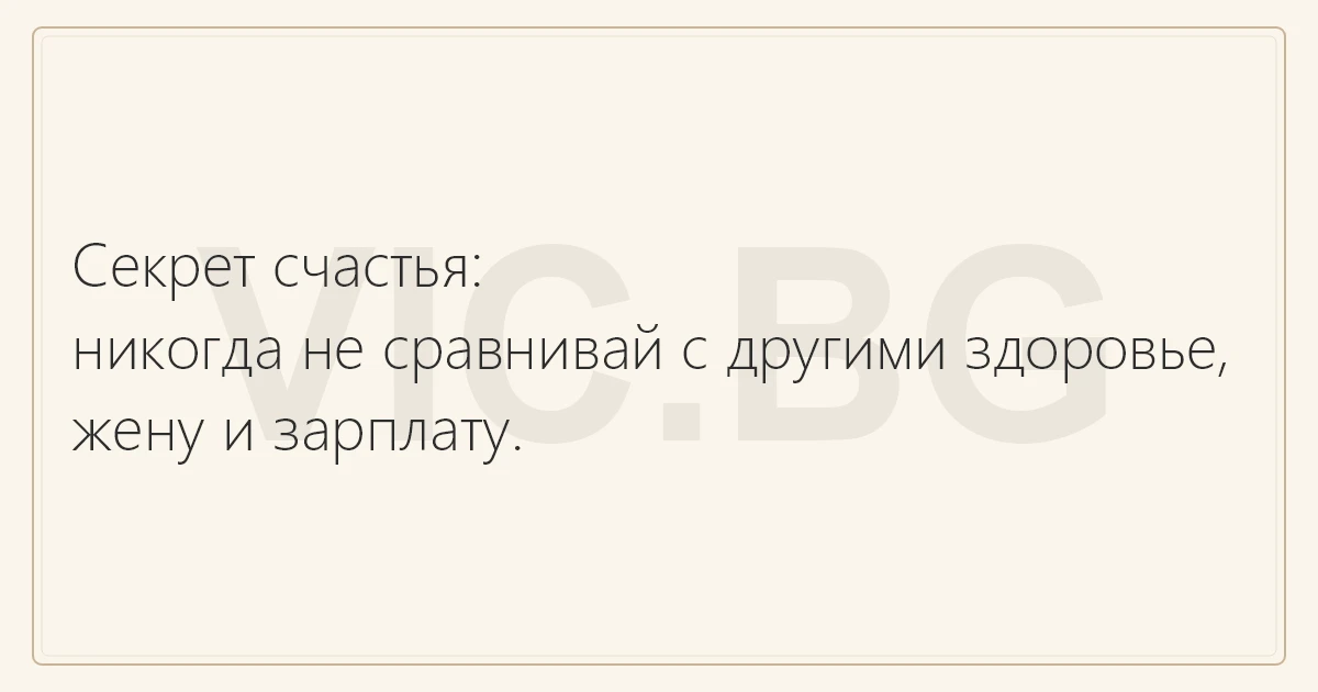 Секрет счастья: никогда не сравнивай с другими здоровье, жену и зарплату.