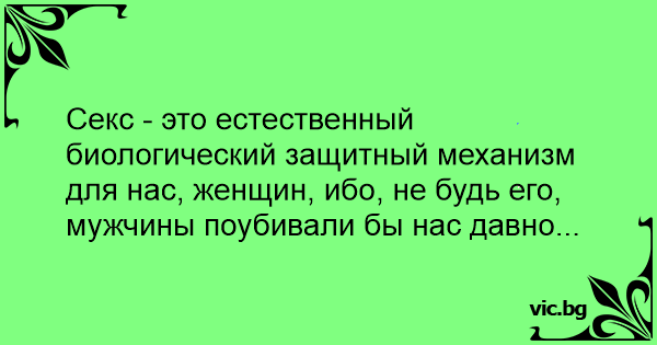 Cekc - это естественный биологический защитный механизм для нас, женщин, ибо, не будь его, мужчины поубивали бы нас давно...