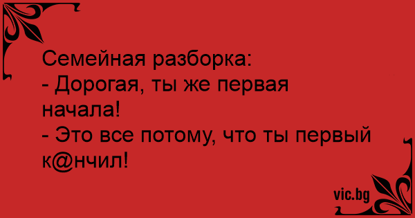 Семейная разборка:<br />- Дорогая, ты же первая начала!<br />- Это все потому, что ты первый к@нчил!