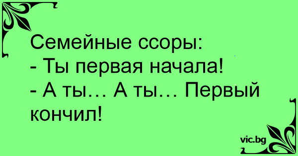 Дружина чоловіку: — Ну, все, не будемо сваритися - Та ти ж перша почала! — А ти перший кінчив!