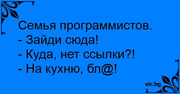 Семья программистов.- Зайди сюда!- Куда, нет ссылки?!- На кухню, бл@! 9 0 0 Анекдоты для программистов