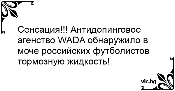 Сенсация!!! Антидопинговое агенство WADA обнаружило в моче российских футболистов тормозную жидкость!