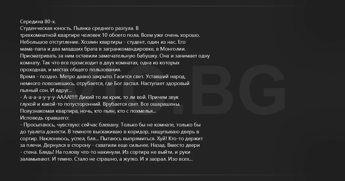 заламывают. И темно. Стало не страшно, а жутко. И я заорал. Изо всех