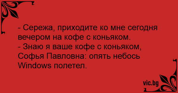 - Знаю я ваше кофе с коньяком, Софья Павловна: опять небось Windows полетел.