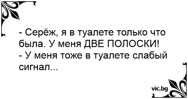 - Серёж, я в туалете только что была. У меня ДВЕ ПОЛОСКИ!