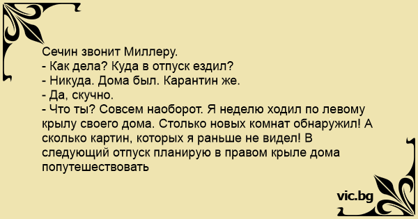 - Что ты? Совсем наоборот. Я неделю ходил по левому крылу своего дома. Столько новых комнат обнаружил! А сколько картин, которых я раньше не видел! В следующий отпуск планирую в правом крыле дома попутешествовать