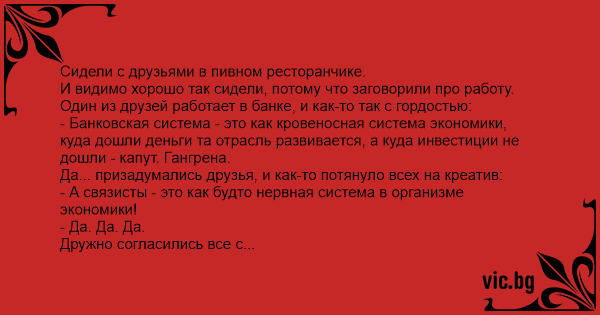 Сидели с друзьями в пивном ресторанчике.
