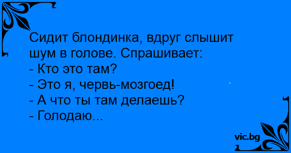 Сидит блондинка, вдруг слышит шум в голове. Спрашивает: