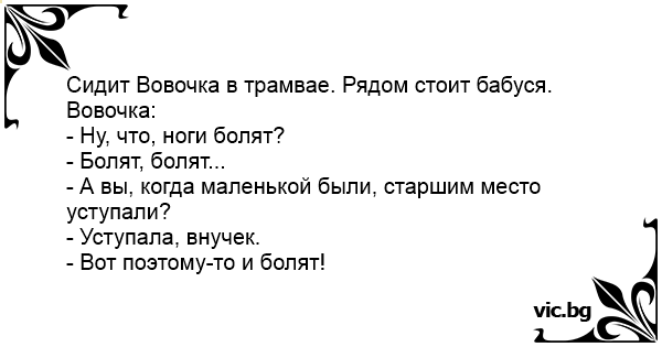 Сидит Вовочка в трамвае. Рядом стоит бабуся. Вовочка: